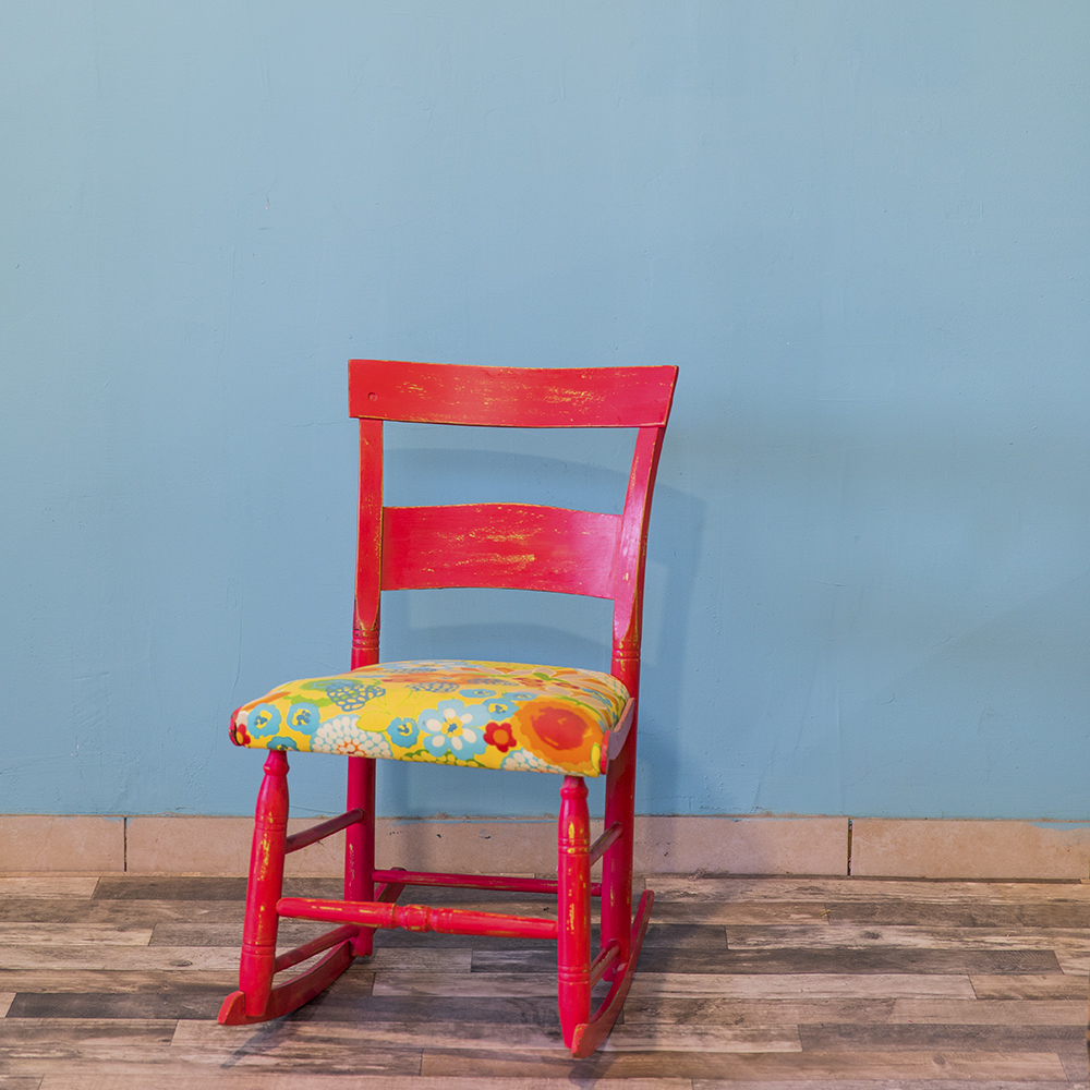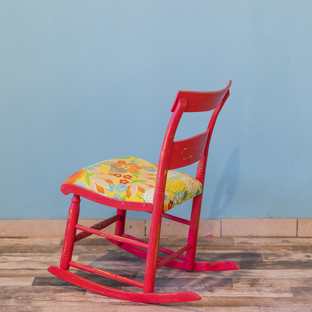 כיסא נדנדה צבעוני וקסום, מתאים בגודלו לילדים.