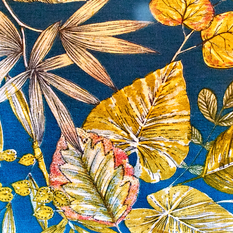 בד סינטטי המתאים גם לחוץ עם הדפס פרחים טרופי