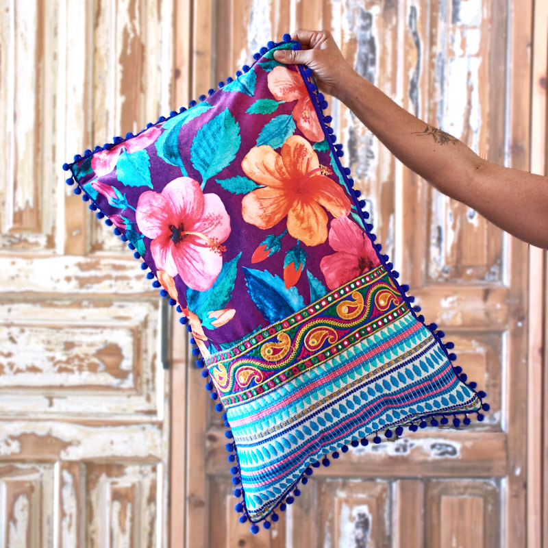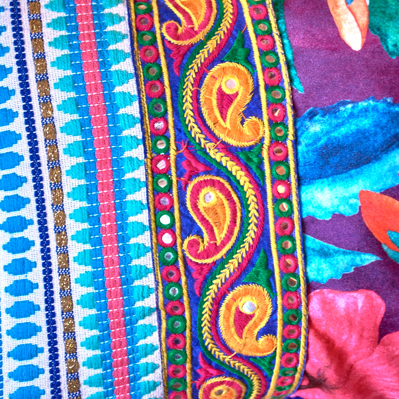 שילוב בדי קטיפה עם בד ארוג ופס רקמה