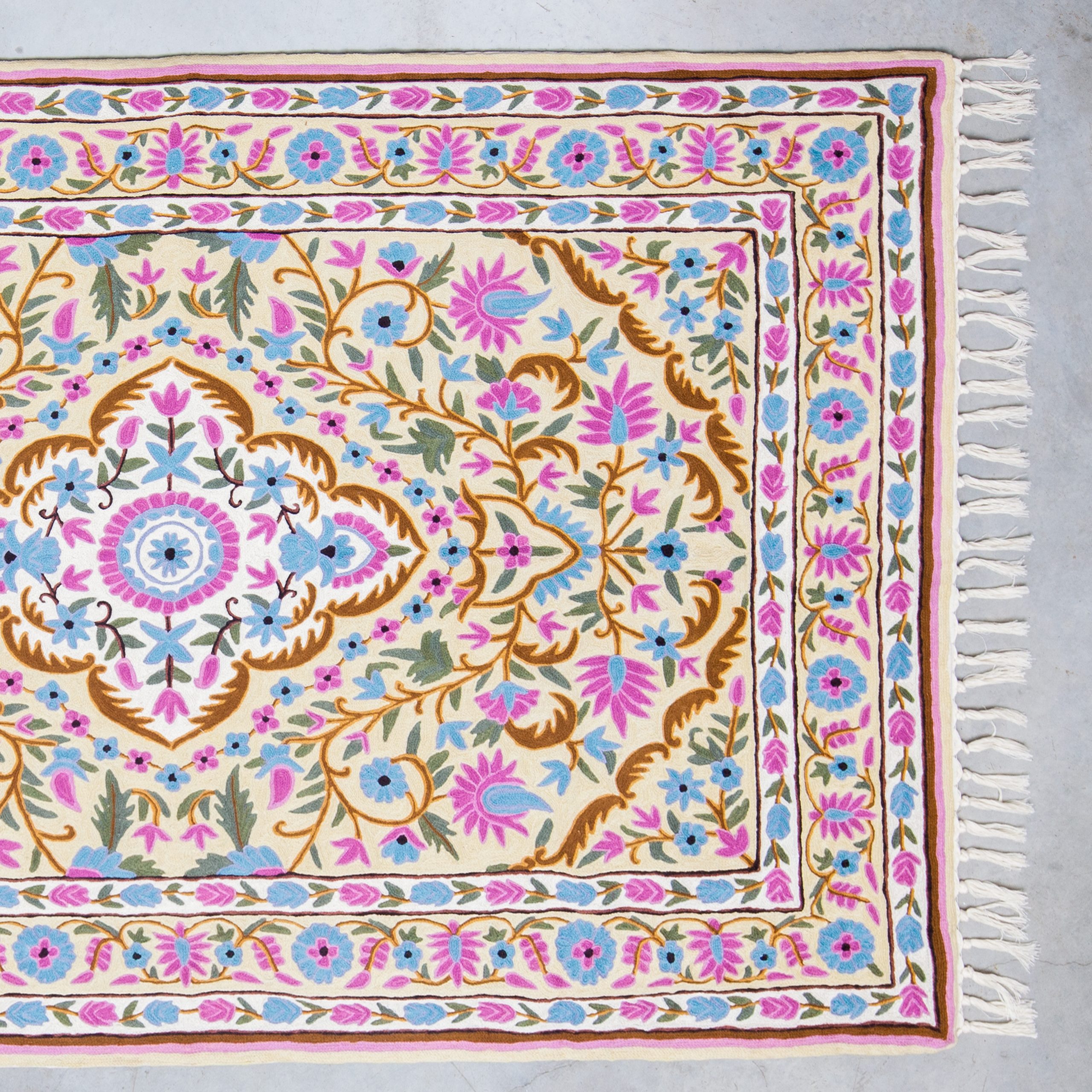 שטיח צמר פרחוני פופולרי המתאפיין בגווניו הורודים, ירקרקים ותכולים עם נגיעות קלות של חום כמעטפת. מעניק תחושת רוגע ושקט בעיניים בגלל קומבינציית צבעים פסטלים.