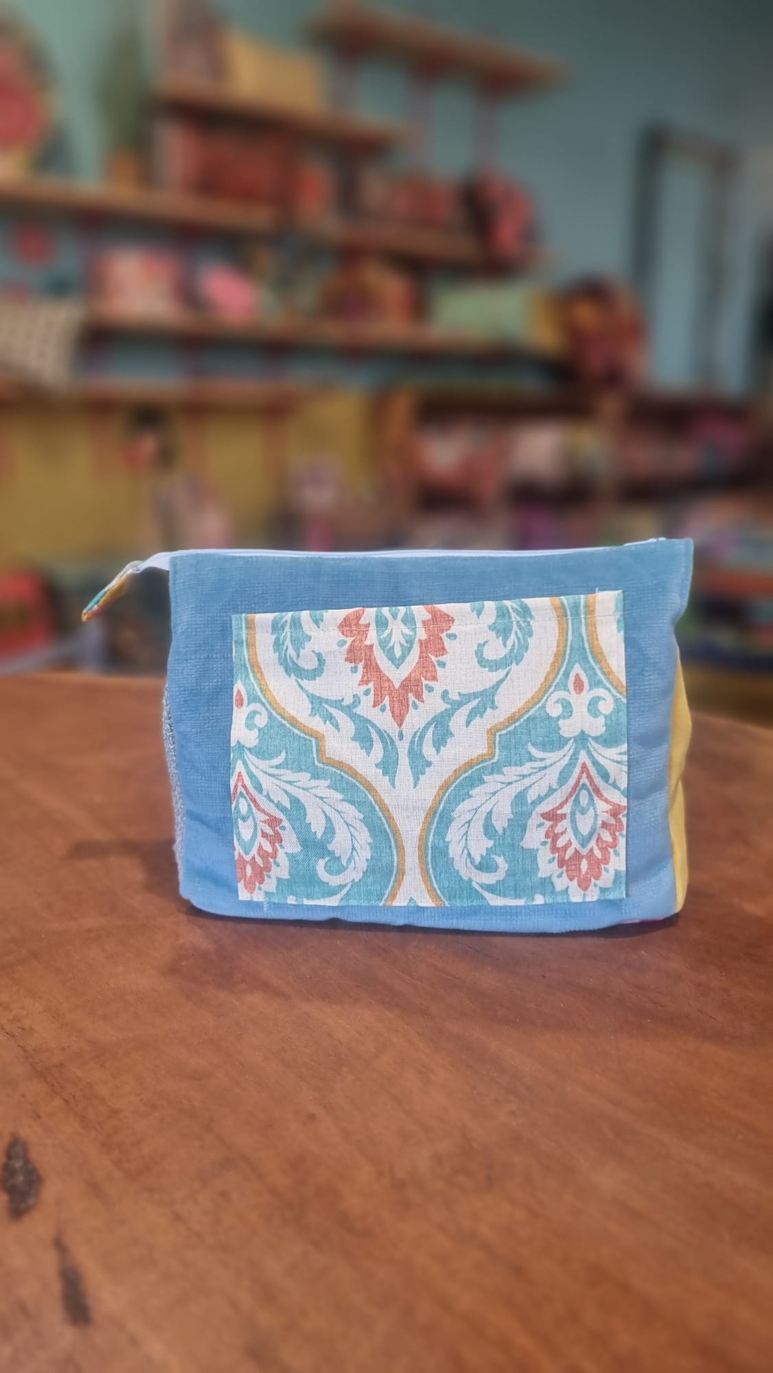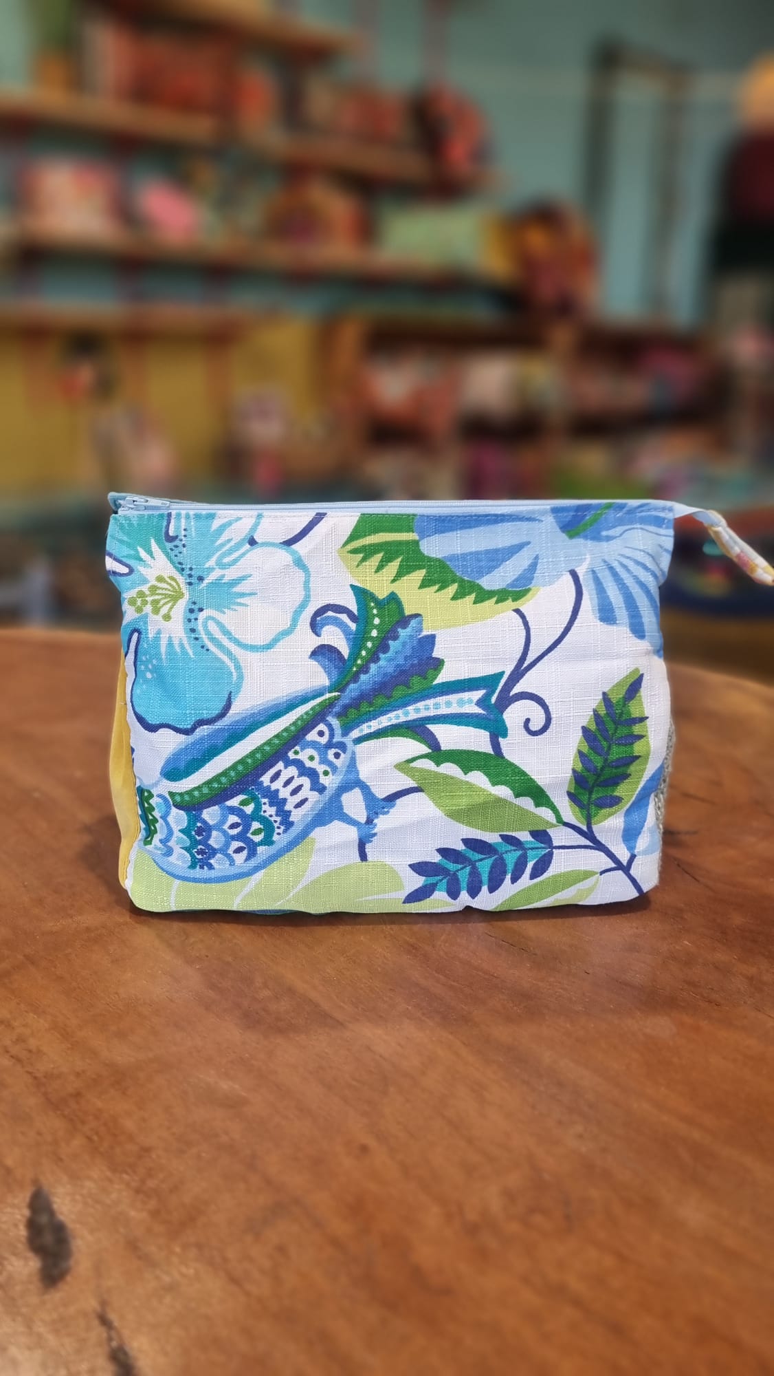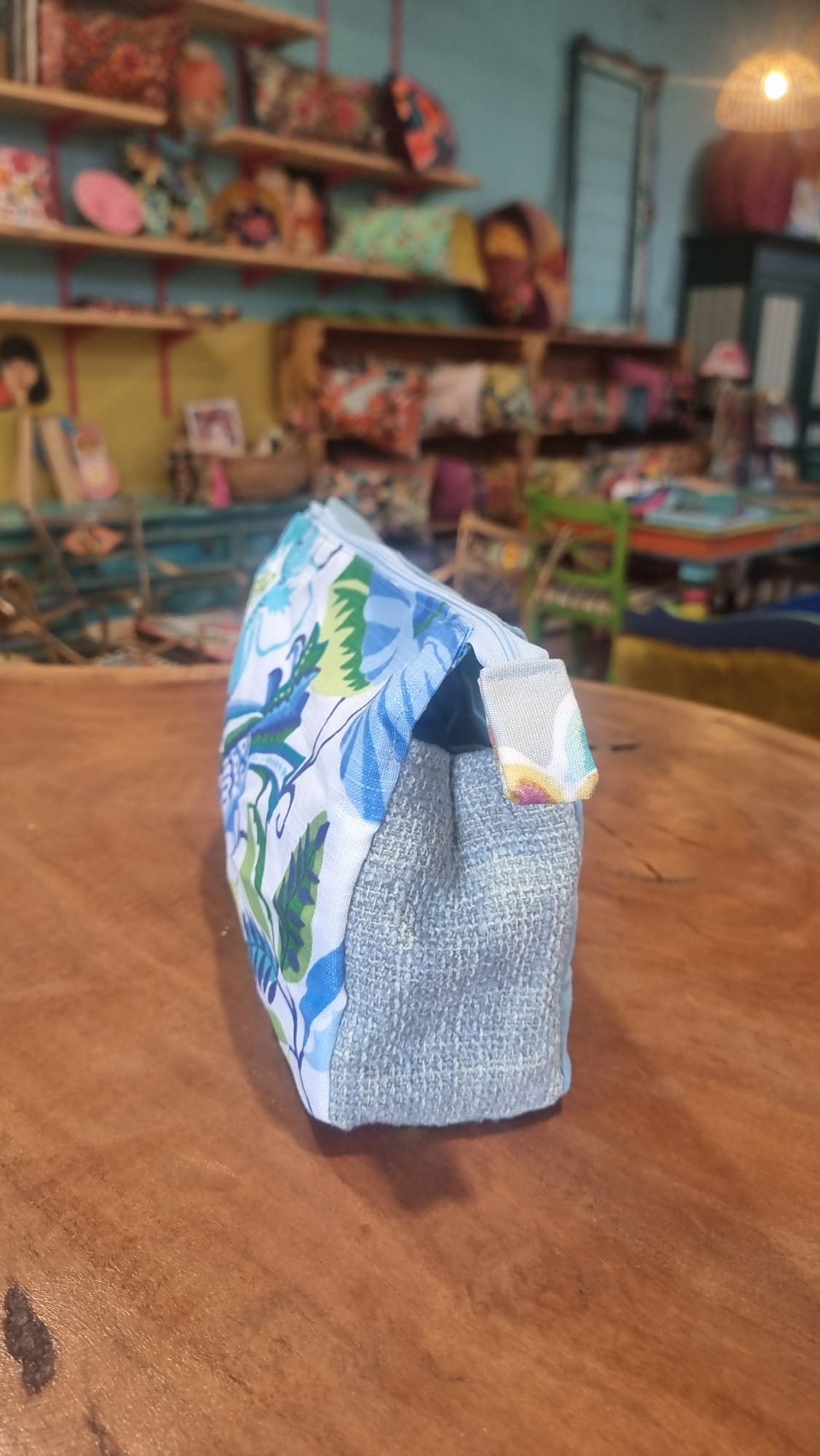תיק איפור פרחים כחולים