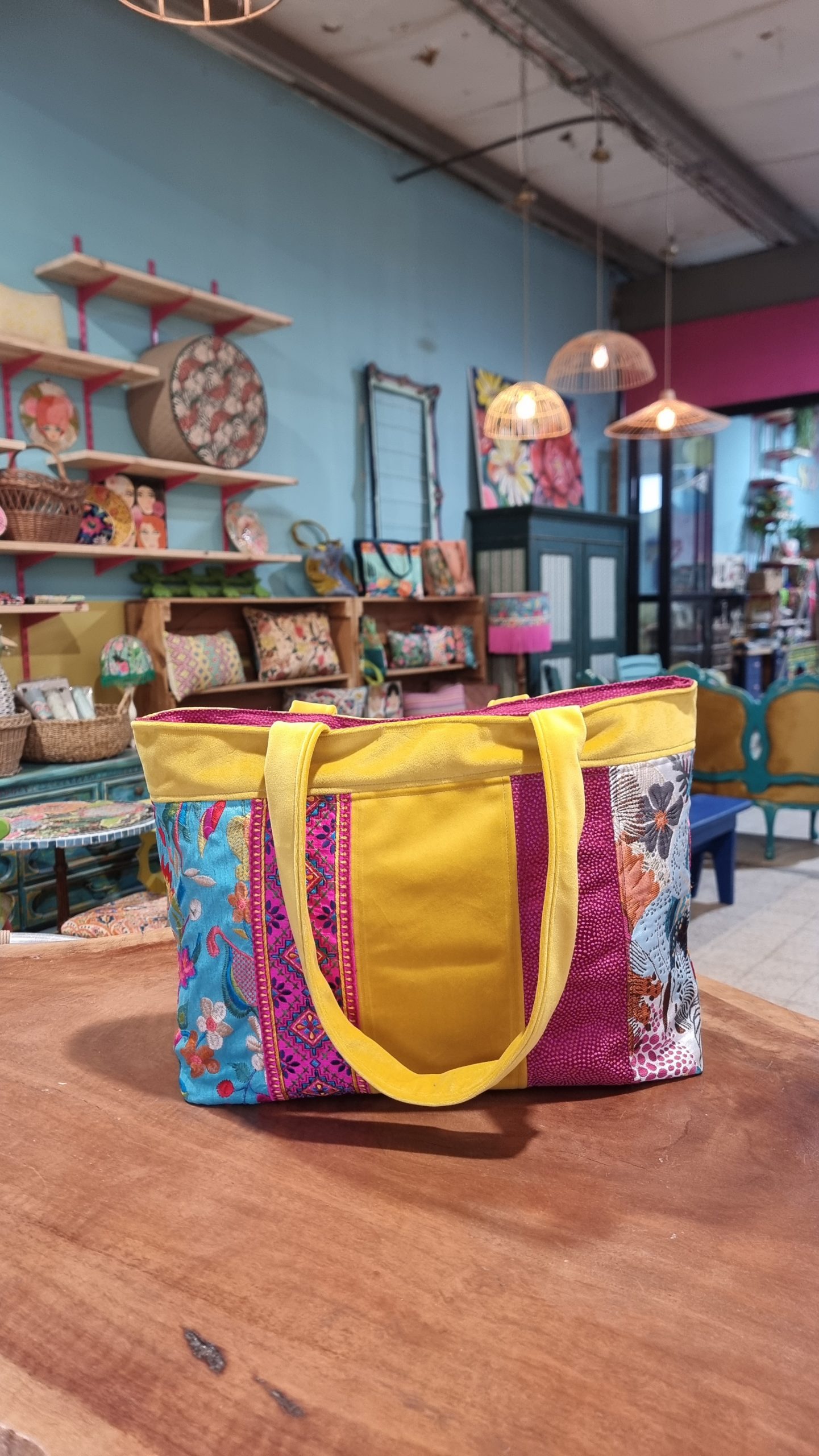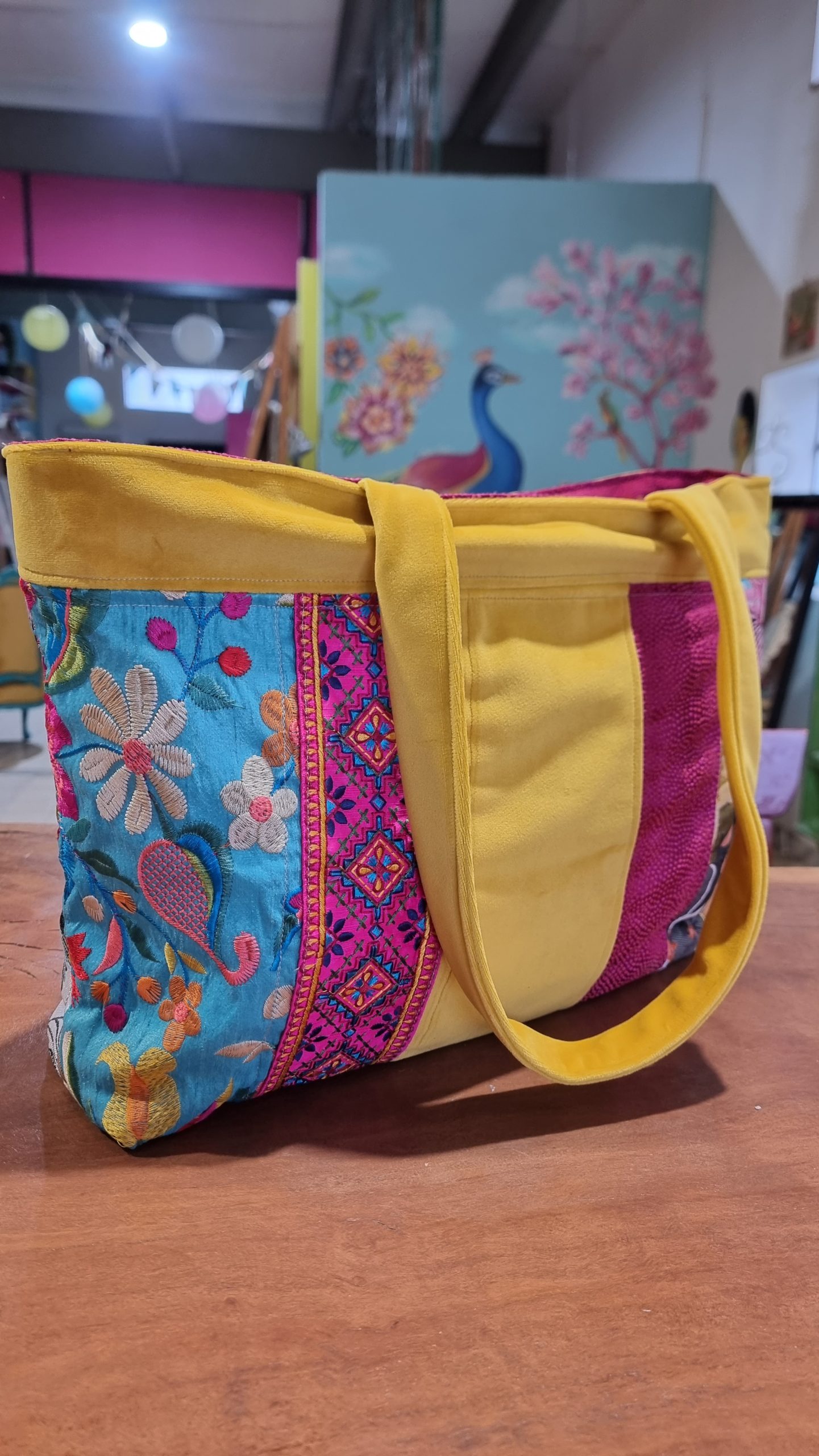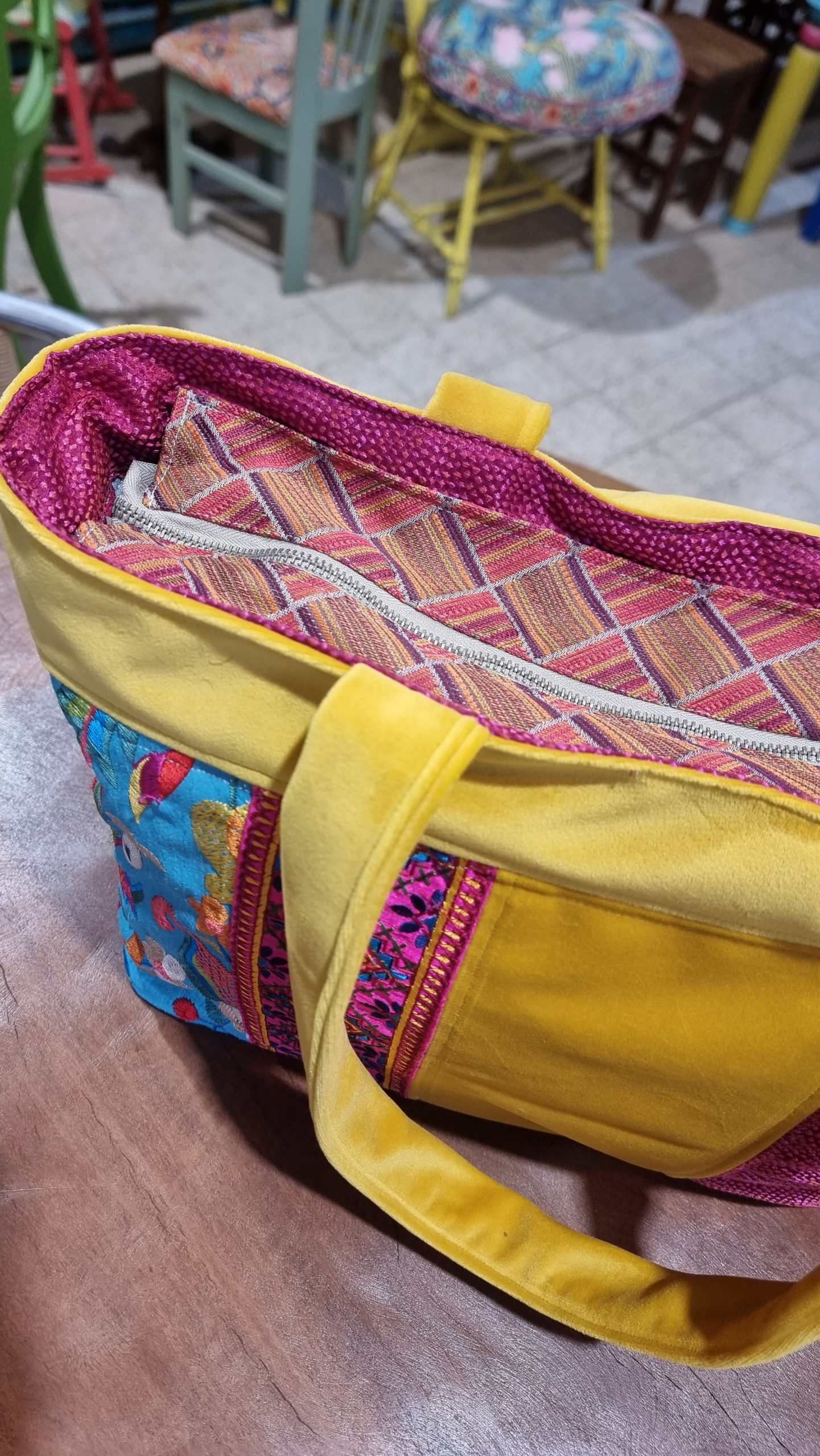 שילובי בדים קטיפה צהובה עם בדי רקמה עשירים ויפים